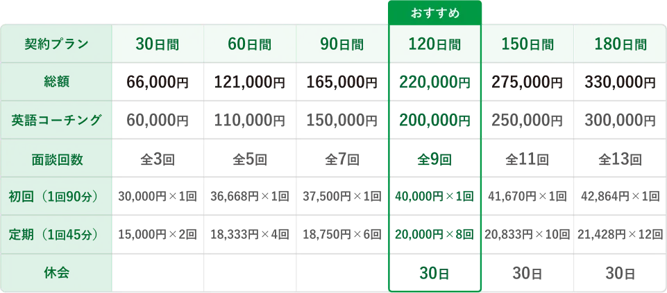入会金 / 教材費 / 英会話レッスン50分×12回